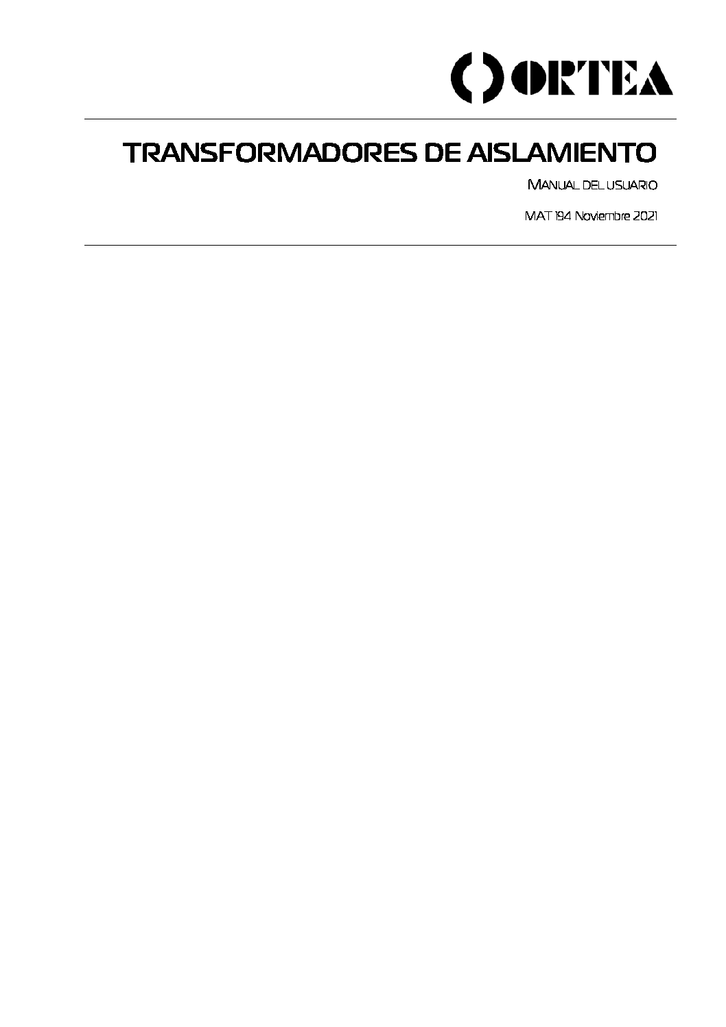 Manual de instrucciones TRANSFORMADORES DE AISLAMIENTO